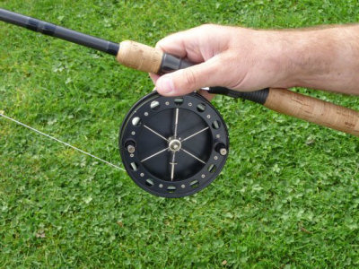 My own preference is the latter, but I also use my middle finger against the inside of the rim drum when playing a fish, preferring my thumb helping to exert pressure via the rod (see fig 3).